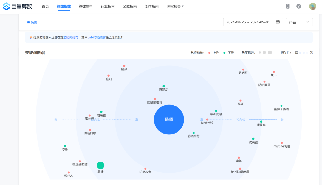 抖音的算数指数也是一个很好用的关联词挖掘渠道,抖音的大数据能力毋庸置疑。