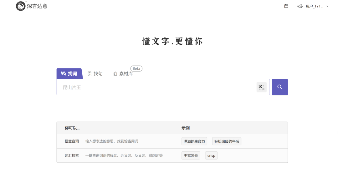 深言达意是一个人工智能驱动的文本信息处理引擎,可根据模糊描述找词找句。