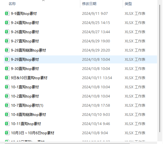 抄爆款的同时,我就发现一个异常值 —— 连着好几天基本上前十五的素材多数都是 AI 。下面这个表,是上个月 9 月 29 的 top 素材表,红线框出来的都是AI相关的素材。