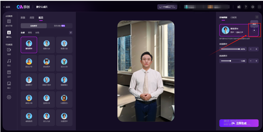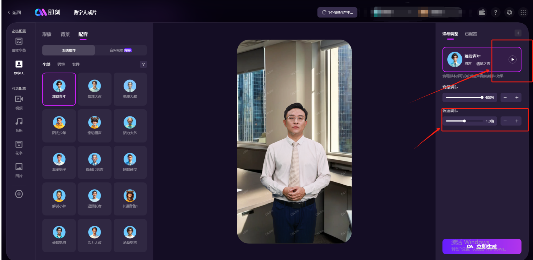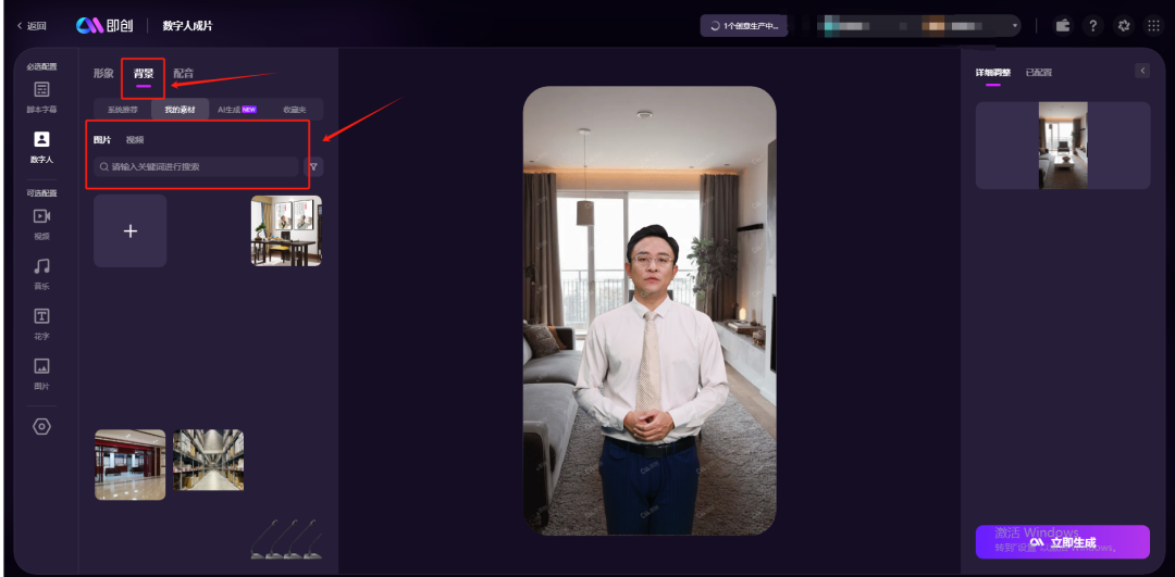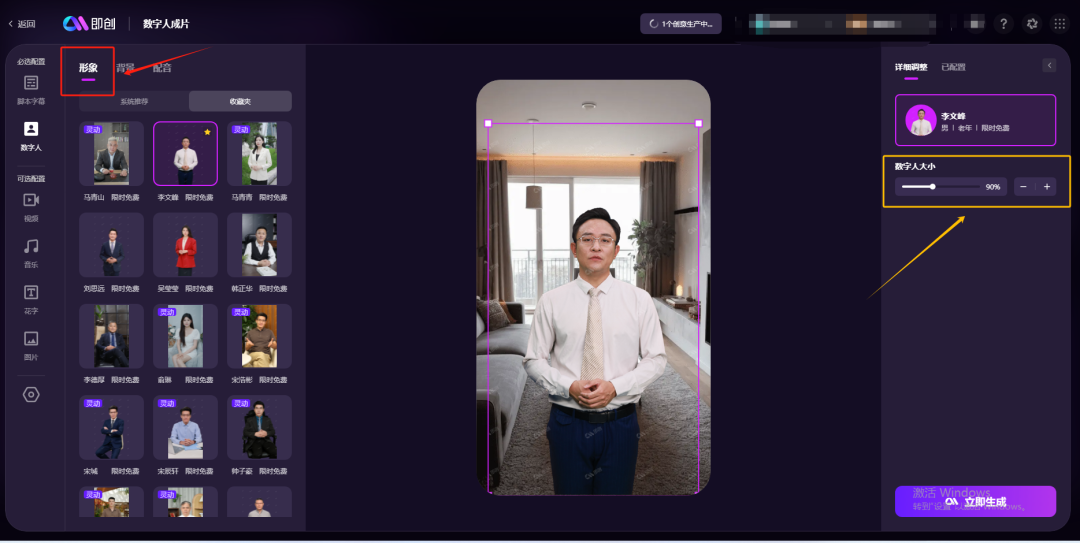 但是固定场景下的灵动数字人,背景不能换,大小不能调,大家可以按照自己实际情况去操作。