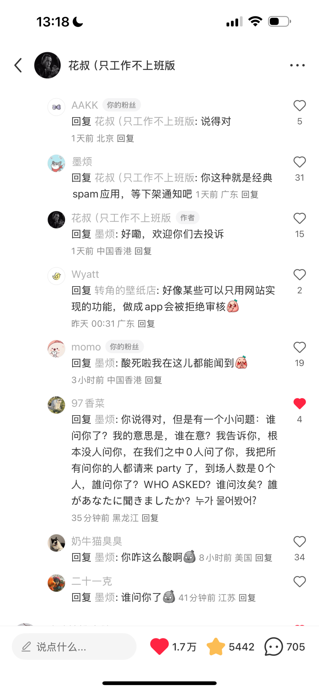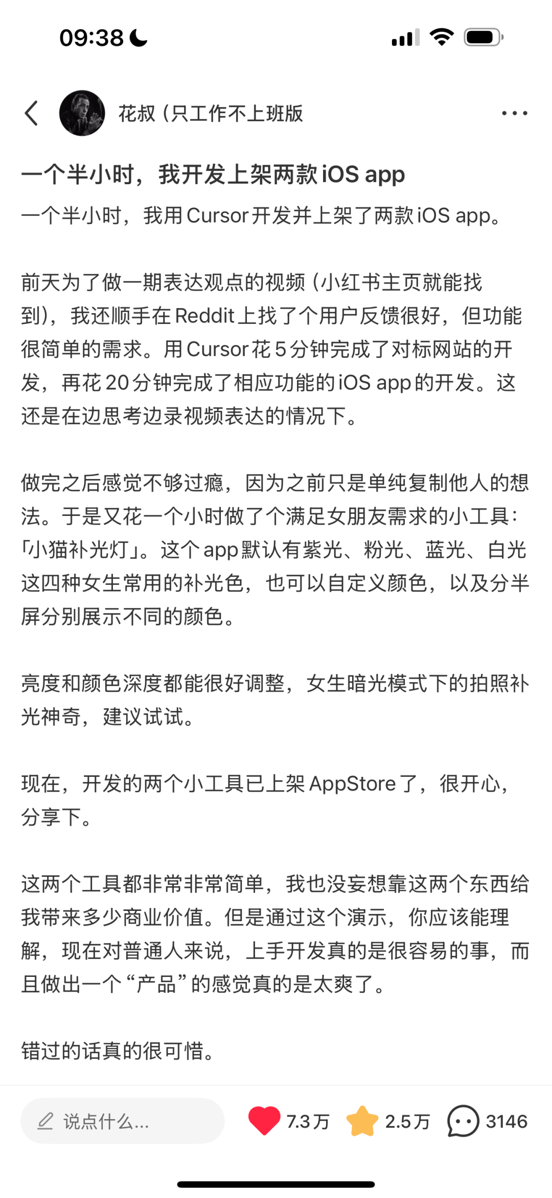 要么在否定这个app存在的价值,认为凭什么这么简单的app就能过审上线;要么在质疑我在笔记中描述的开发时间,我也能理解这对不会用AI编程的工程师来说太不可思议了。