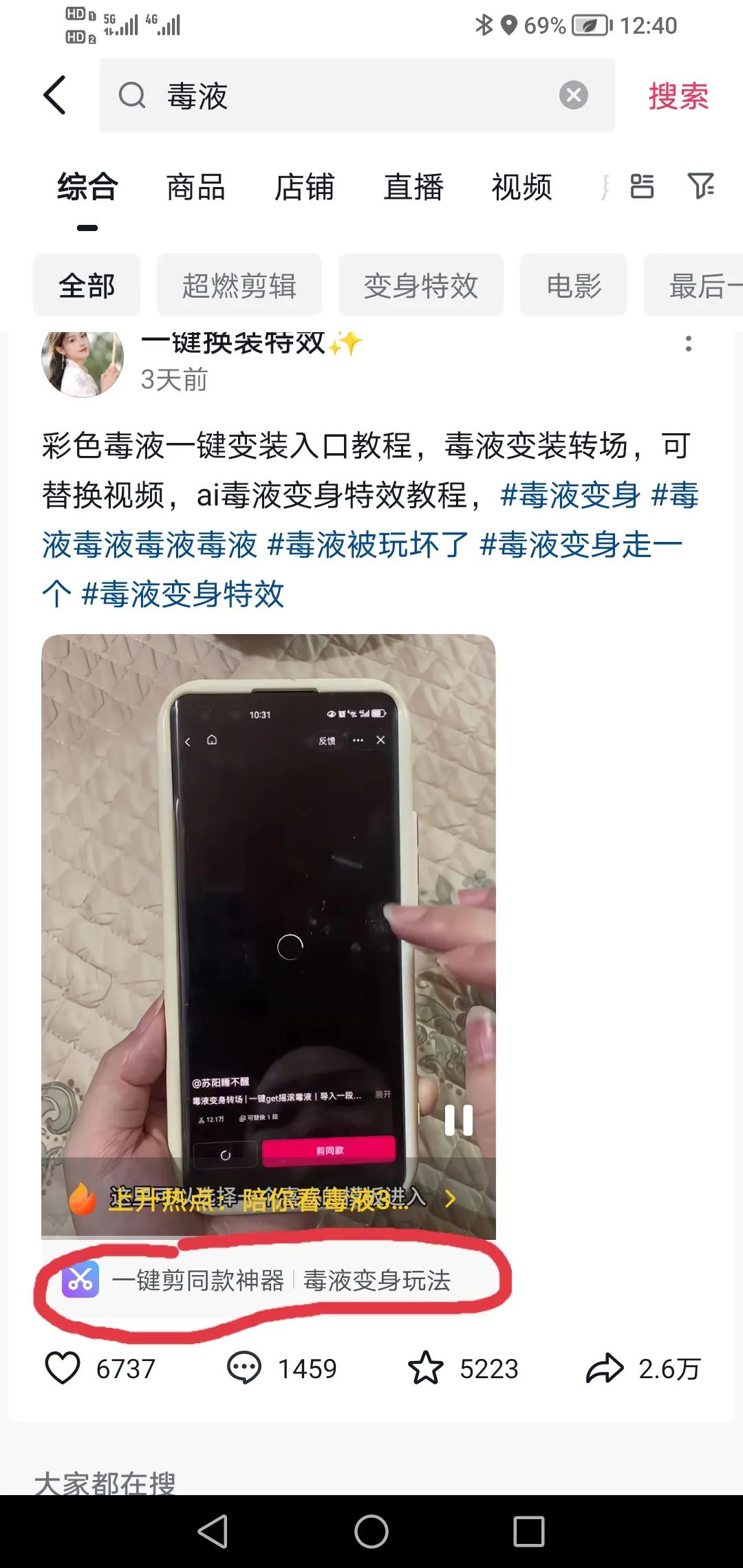 然后再从抖音一键剪同款小程序进入,找到毒液特效