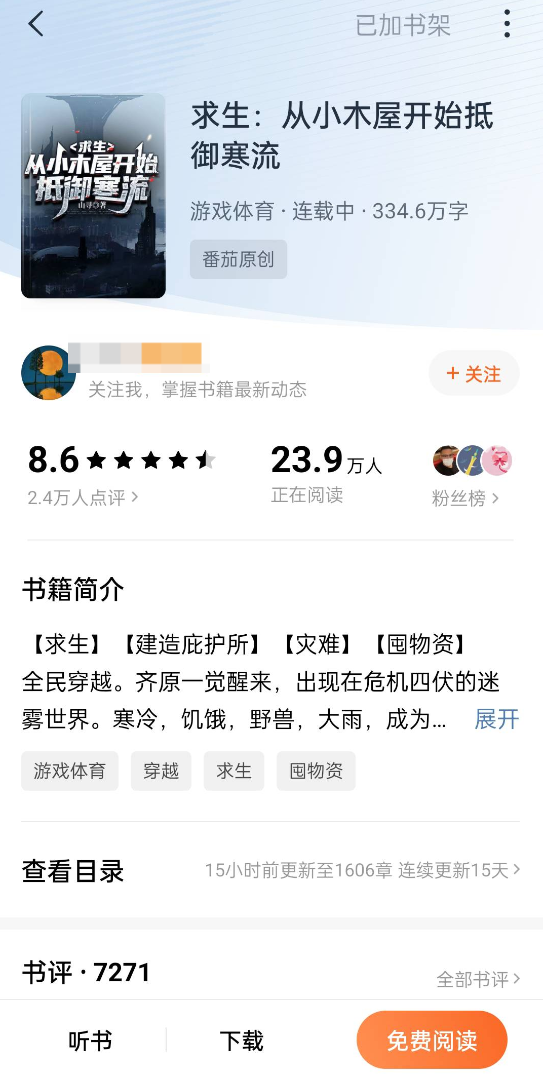 《求生从小木屋开始抵御寒流》简介:【求生】【建造庇护所】【灾难】【囤物资】全民穿越。齐原一觉醒来,出现在危机四伏的迷雾世界。寒冷,饥饿,野兽,大雨,成为所有人生活的主旋律。日出而作,日落而息成为所有人的生活状态!