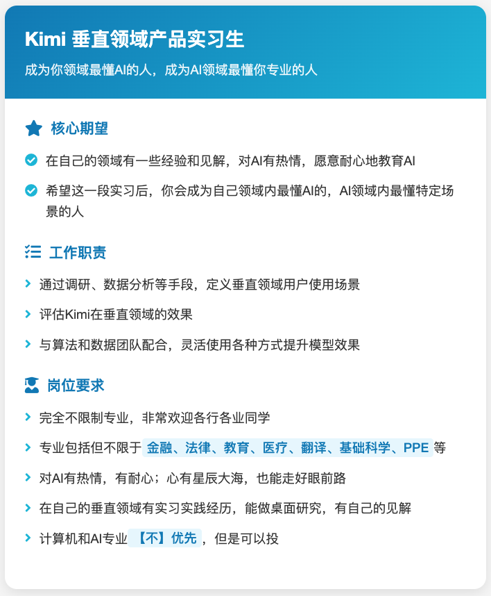 为什么月暗能把 AI应用做这么好呢?除了产品本身能打之外,“垂直领域实习生”或许也是秘密武器之一: