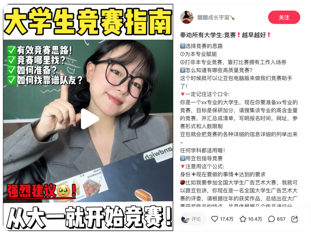 而从AI自媒体的角度,优先把“流量圣体”们的优质内容模板作为对标,及时应用到自己的作品当中去,也能更快取得正反馈。